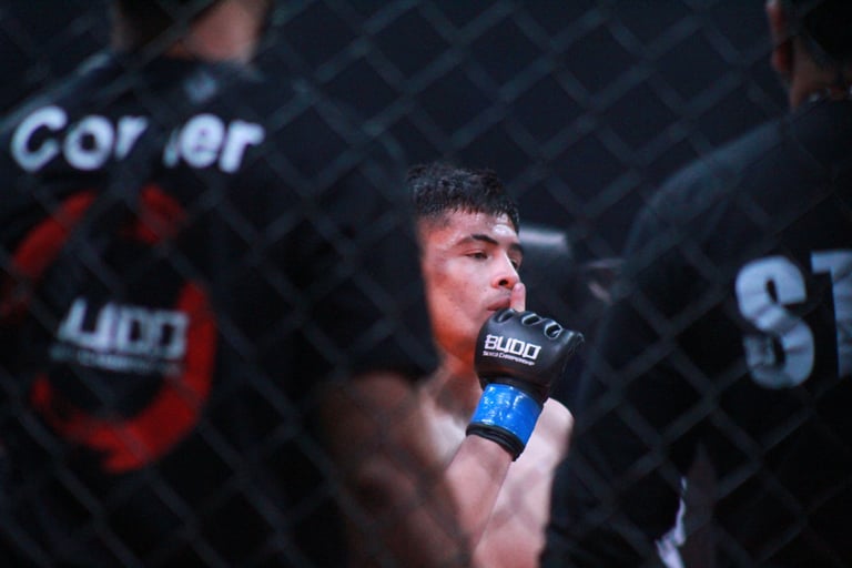 Roy Benavides también se impuso, llevándose el triunfo por decisión unánime tras una intensa y estratégica pelea. ¡Una actuación digna de aplauso y pura adrenalina en la jaula de Budo! 🏆🔥