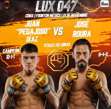 El camino de ambos peleadores ha sido intenso. José Roura, representante del equipo Brazilian Warriors y Lobo Gym, logró coronarse campeón en LUX 035 tras una dura batalla contra Fito Rubio. Sin embargo, en su primera defensa, Juan Díaz lo destronó en diciembre del año pasado. Díaz, integrante del Performance Institute en Ciudad de México, ha demostrado una gran capacidad técnica y física, con una racha de victorias que lo posicionan como uno de los mejores talentos del país.