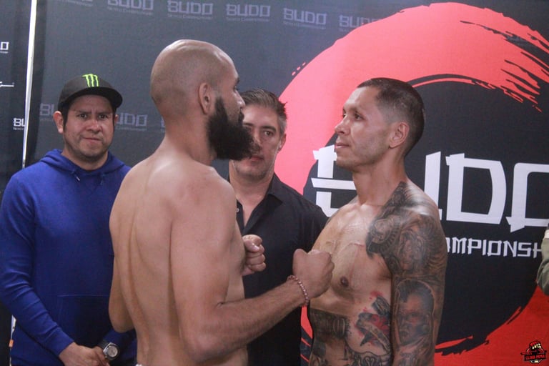 En Budo Striking, Luis “Wicho” Castañeda y Mauricio “El Karajo” Martínez disputarán el título inaugural del peso supermedio, en una pelea donde se espera una definición por nocaut dada la agresividad y técnica de ambos peleadores. Además, la cartelera de Striking trae el duelo coestelar entre Sinué “The Kid” Victorino y el argentino Matías “Bandido” Otarola, enfrentamiento clásico de México vs Argentina que sin duda será un choque de estilos y carácter, imperdible para los seguidores de Muay Thai.