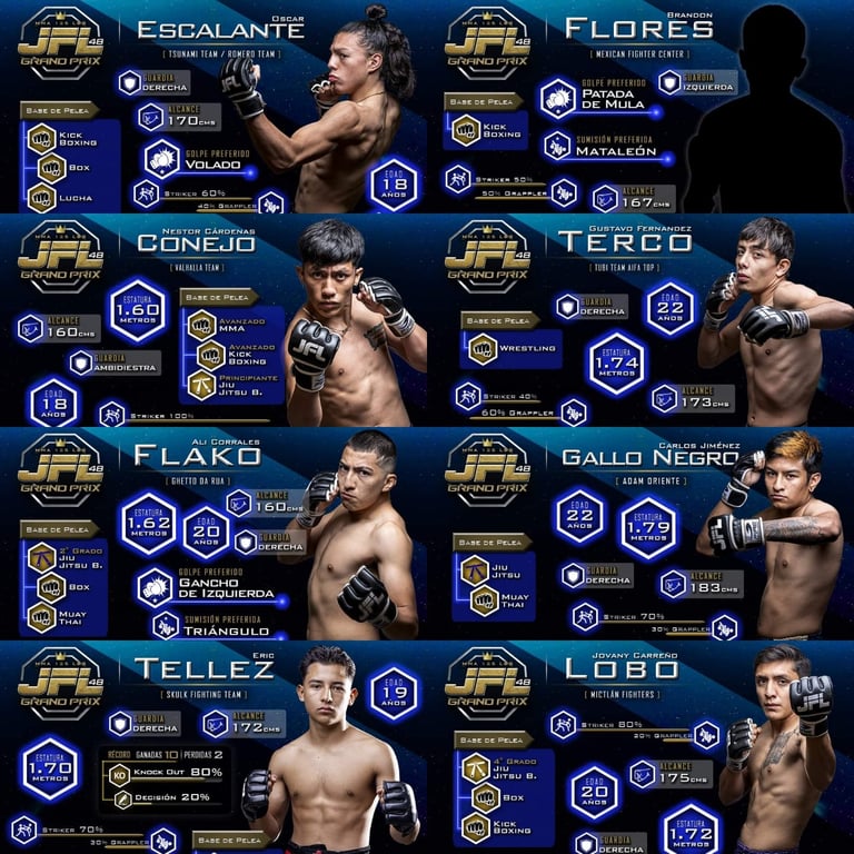 Descubre a los jóvenes talentos que competirán en el Grand Prix de las 125 lbs de JFL 48, donde el futuro del MMA se definirá en una noche llena de acción.